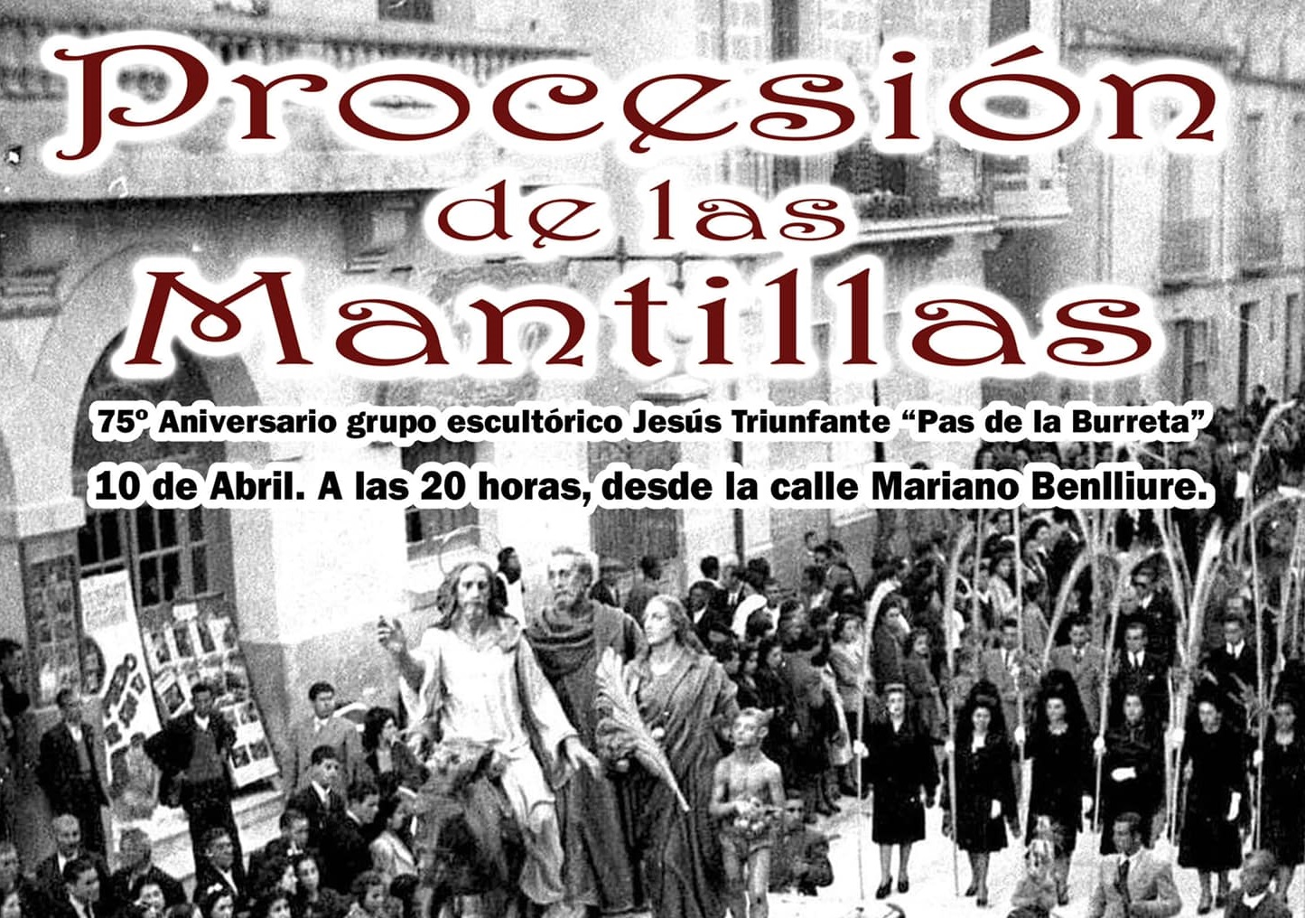 Con motivo del 75 Aniversario del fallecimiento del escultor Mariano Benlliure, y la celebración del Año Benlliure, la Cofradía de Jesús Triunfante organizaba la “Procesión de las Mantillas” para Domingo de Ramos por la tarde.