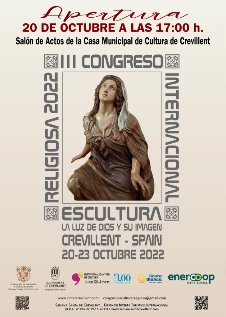 Tras el éxito de las ediciones anteriores (2016 y 2018), desde la Federación de Cofradías y Hermandades de Semana Santa de Crevillent, junto al Ayuntamiento de Crevillent y el Instituto Alicantino de Cultura Juan Gil-Albert, y en colaboración con la Diputación de Alicante, se está organizando el III Congreso Internacional de Escultura, a celebrar del 20 al 23 de octubre de este presente año.