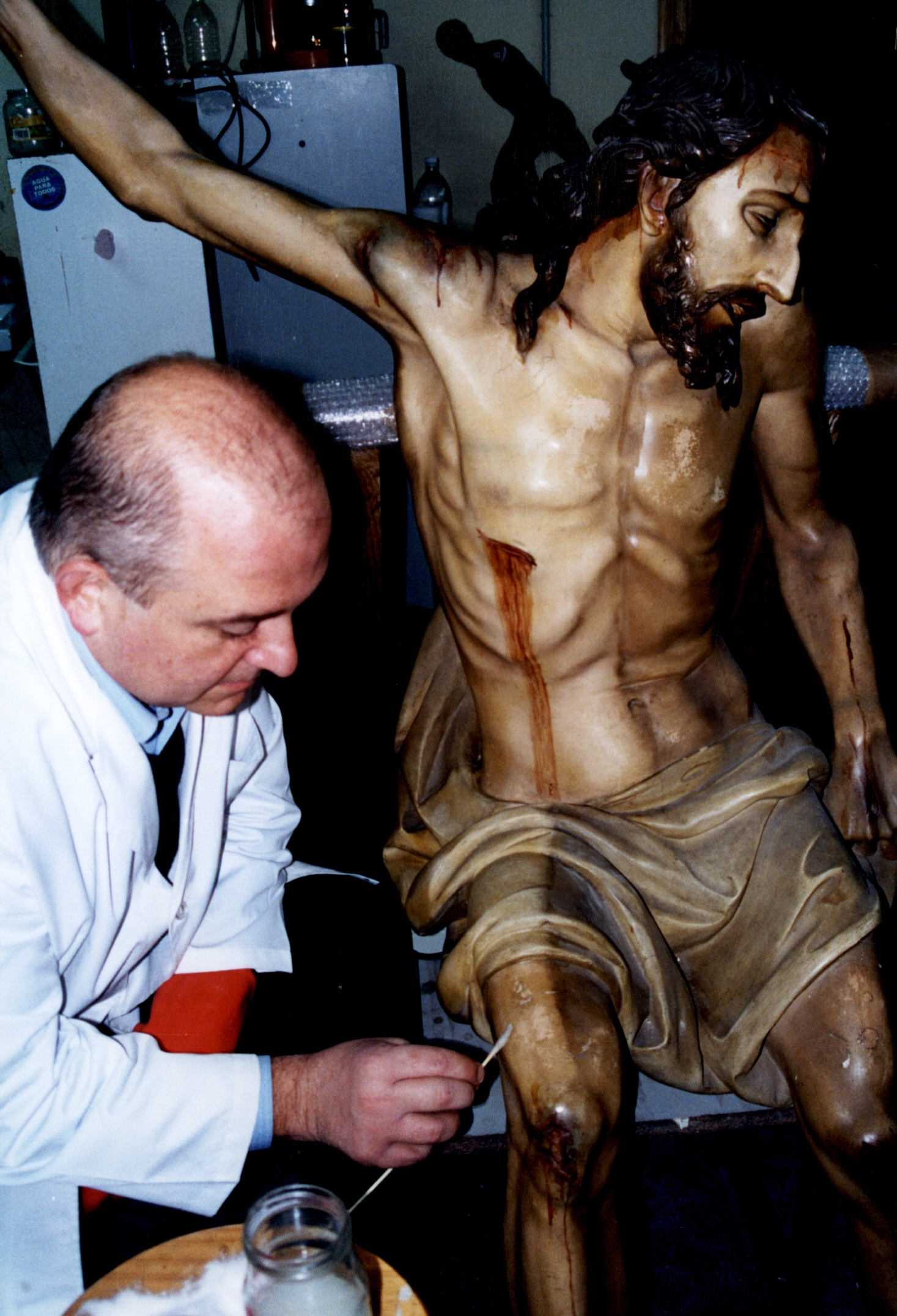 Por ello, al término de la Semana Santa de 2001, de nuevo otro transportista de la cofradía, en este caso Carlos Mas Ruiz (Vidriera) carga las imágenes para llevarlas hasta Murcia donde el Centro de Conservación y Restauración Asoarte, dirigido por Mª Loreto López Martínez procedería a la restauración de las cinco imágenes que forman el Stmo. Cristo del Descendimiento.