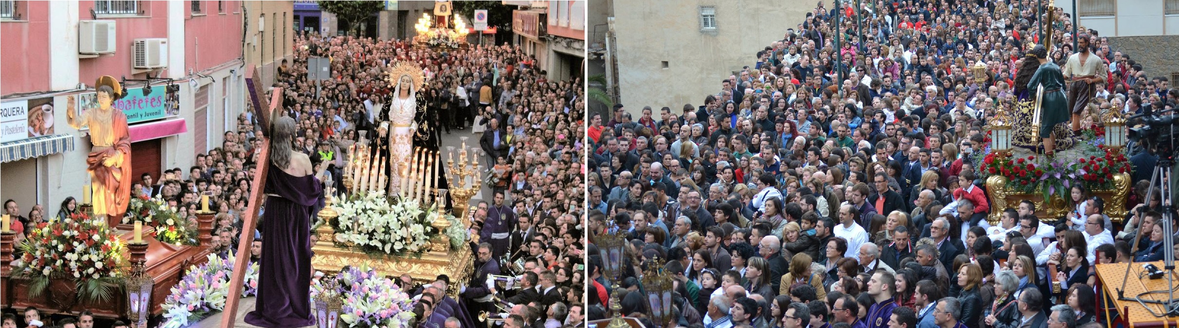 As we well know, the sepulchre is not the end. Easter Sunday communicates the good news that Christ has risen, symbolized by doves in flight, the ringing of bells and, it could not be otherwise represented by the people of Crevillent, singing the Hallelujah of Haendel while Jesus in the Blessed Sacrament and the Queen of Peace meet.