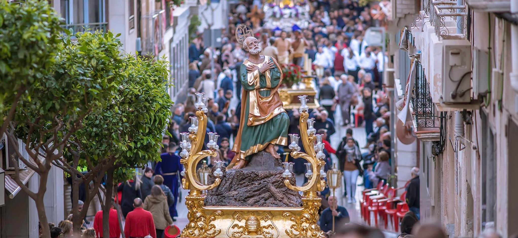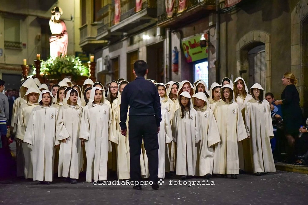 It is also known as the “Procesión de los Coros” due to the participation of the different choirs of the population accompanying with short compositions the procession of the different icons that participate. The incredible sculptures of Mariano Benlliure, together with those of other Valencian sculptors, make this procession one of the most beautiful that predominate in the Holy Week of Crevillent, since the spectator observes chronologically the sequences of the death of Christ while they are accompanied by different polyphonies.