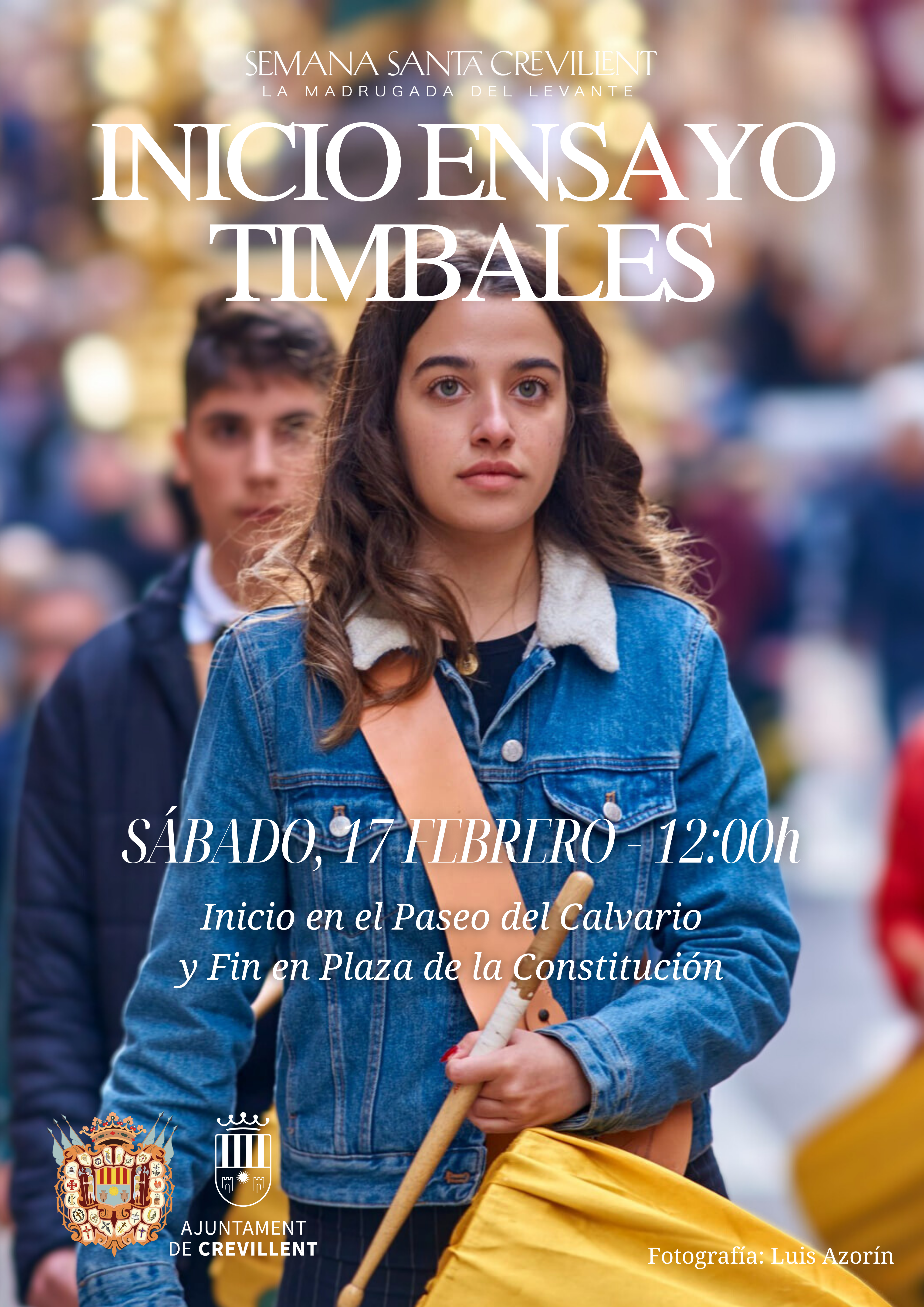 Por primera vez, el Inicio de Ensayos de Timbales de la Semana Santa de Crevillent empezará en el Paseo del Calvario y finalizará en la Plaza de la Constitución. Además, pasa a celebrarse el sábado a las 12:00h.