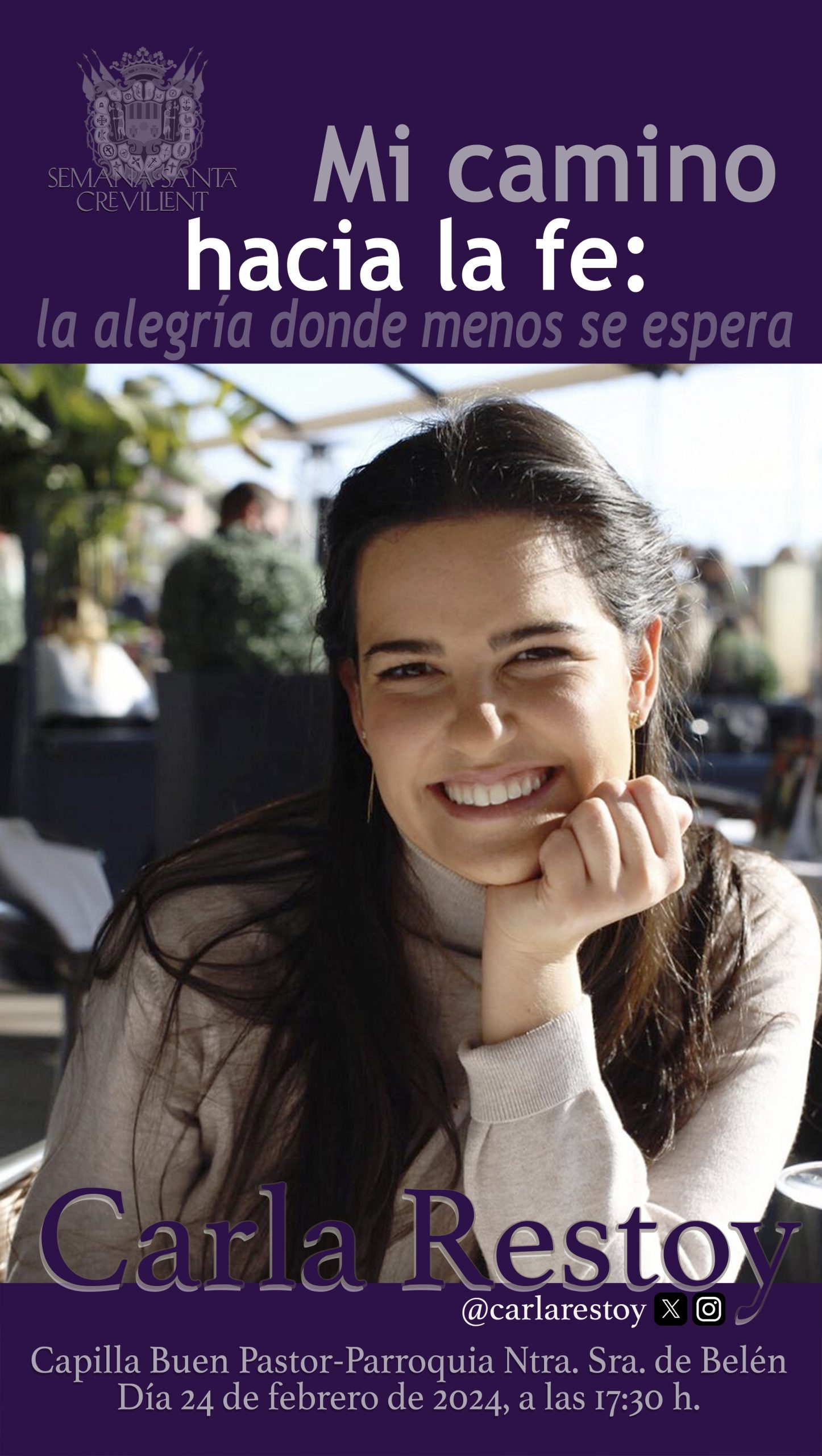 Carla Restoy será la encargada de de realizar la primera de las charlas cuaresmales de este año, titulada: la alegría donde menos se espera. El próximo día 24 de febrero a las 17:30 en la Capilla del Buen Pastor de la Parroquia Nuestra Señora de Belén.
