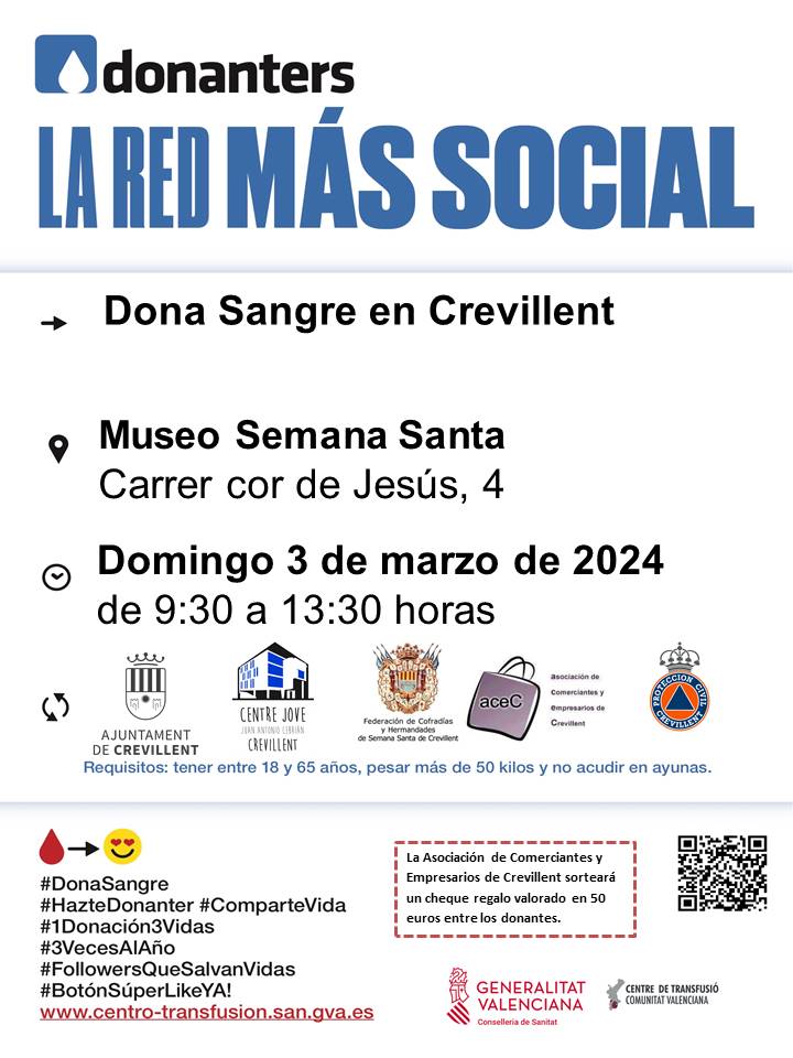 El próximo sábado 20 de enero a las 17.00h se llevará a cabo la presentación del Cartel de la Semana Santa de Crevillent del 2024 y la lectura de la crónica de la pasada Semana Santa.