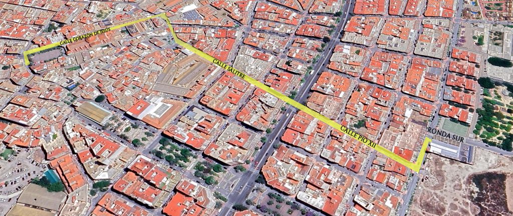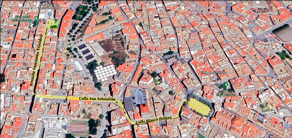 Itinerario: Plaza Maciá Abela – Calle Santísima Trinidad – Calle San Sebastián – La Morquera – Calle Blasco Ibáñez – Plaza Constitución.