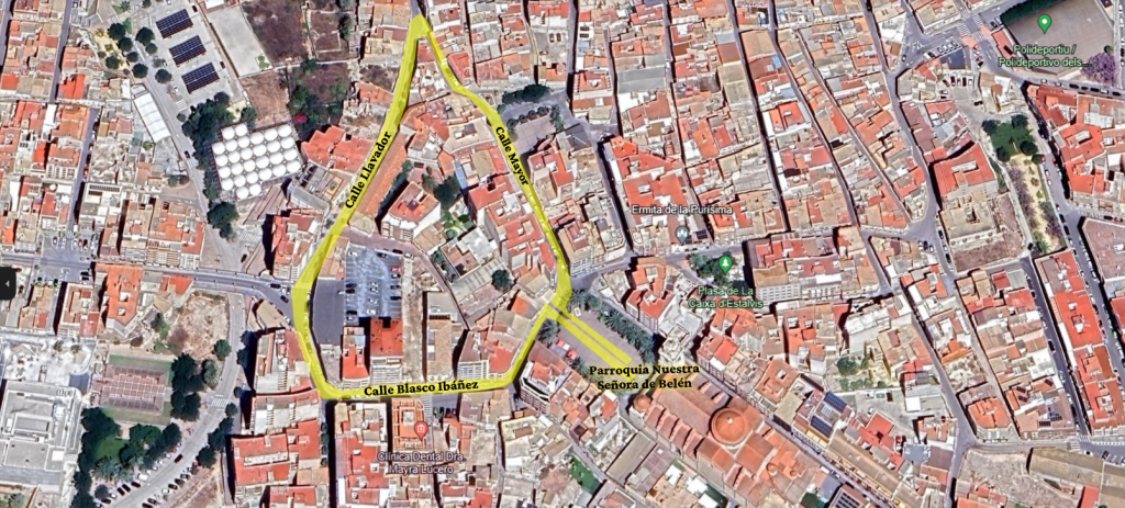 Itinerario: Parroquia Nuestra Señora de Belén – Plaza Constitución – Calle Mayor – Calle Llavador – La Morquera – Calle Blasco Ibáñez – Plaza Constitución – Parroquia Nuestra Señora de Belén.