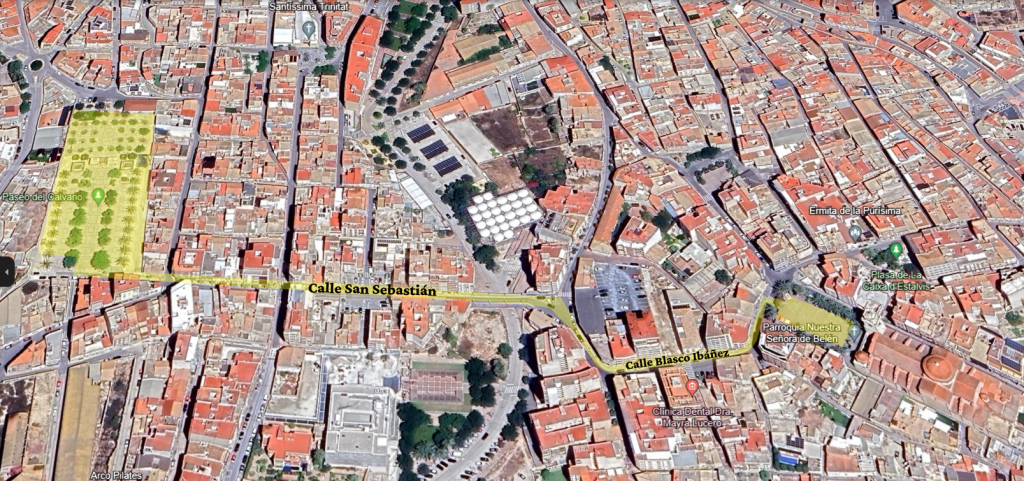 Itinerario: Paseo del Calvario – Calle San Sebastián – La Morquera – Calle Blasco Ibáñez – Plaza Constitución.